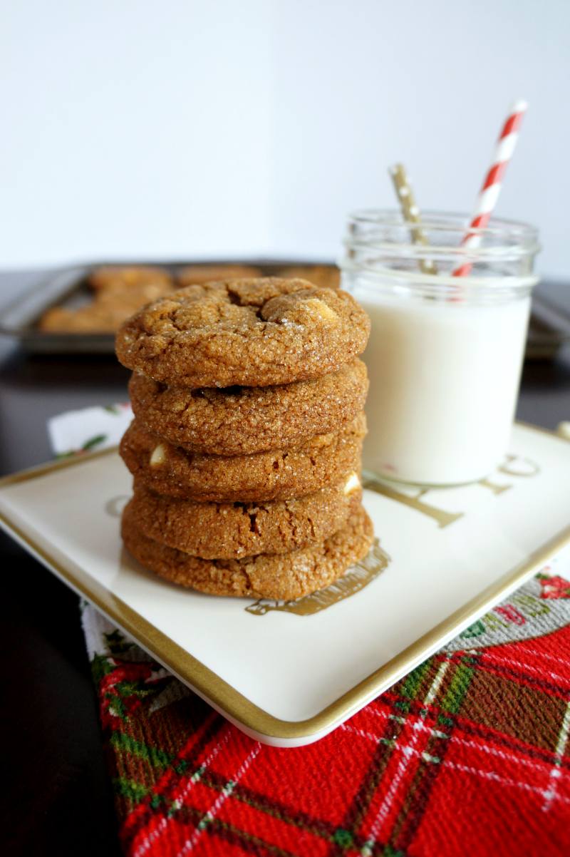 I have to admit it... I'm actually not a HUGE fan of cookies. I know, I know. The tragedy! I thoroughly enjoy a good spoonful of chocolate chip cookie dough {especially in truffle form}, and cookies still warm from the oven are a definite weakness. But, once they cool off... meh. Not my favorite thing. But these cookies, I could not stop eating. I made molasses crinkles for the first time last Christmas, and I fell in love! This year, I decided to make them again and add a bit of white chocolate, because I'm a firm believer that everything can be improved with the addition of chocolate. The dough was phenomenal, but the baked product was even better than I imagined! These are rich and buttery, with a warmly spiced base and a handful of sweet white chocolate chips scattered throughout, and they achieve the perfect ratio of crisp edge to doughy center. Serious cookie perfection.