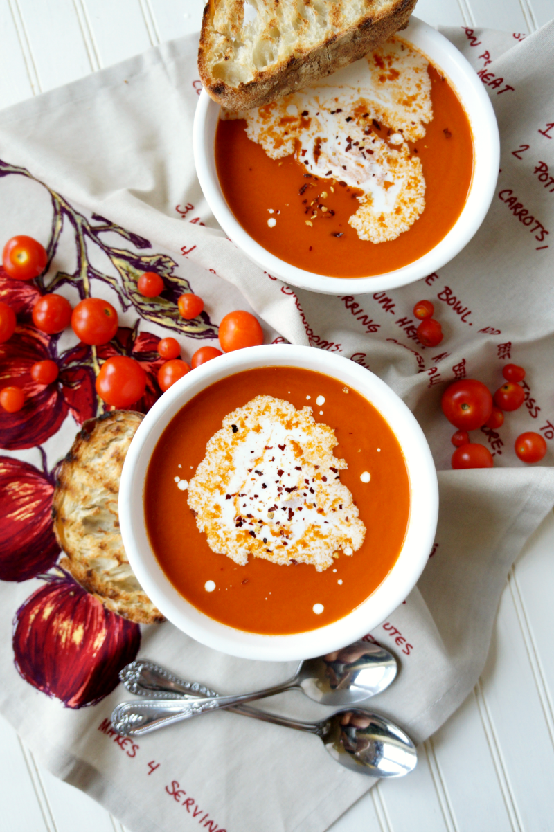I think it's all sorts of hilarious that I've never been a huge soup person, and for several years I had like one or two recipes for soup on this little bloggie of mine. And then inexplicably I made a bunch of soup this past year and my collection has considerably grown! We've got creamy pumpkin and creamy poblano pepper {and now we've got creamy tomato, too!}, and on the chunky side of things, we have chickpea noodle soup, italian lentil soup, chicken taco soup, and minestrone soup {made in the crockpot}. So, well, I guess now I can say I'm a soup person after all!