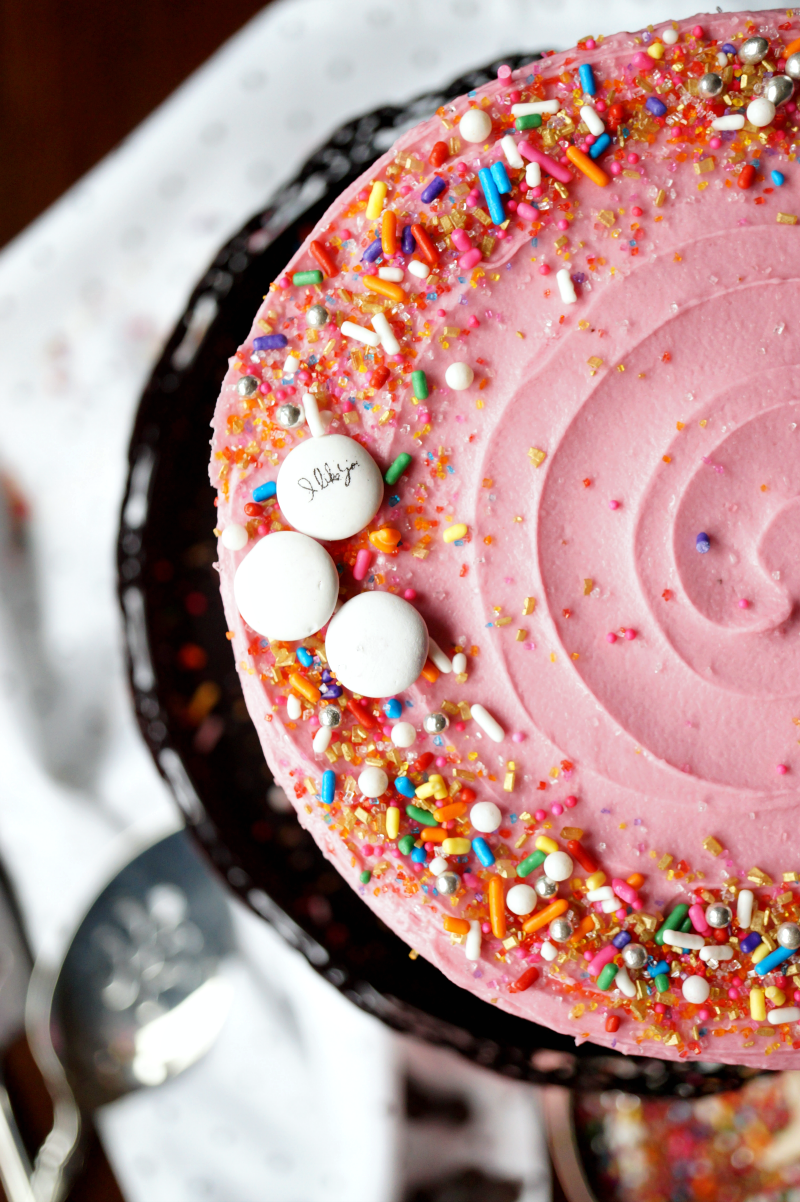 This cake is SOOOOO cute and the idea of pomegranate frosting is fab. The pink, the ombre, the sprinkles - love it all 🙂