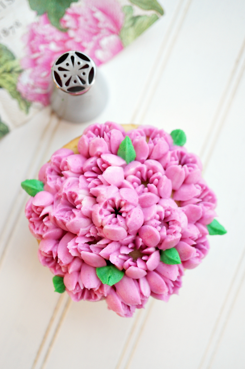 Look at how similar the tips are but how different the flowers look! The top one is the peony flower I was just talking about, and the bottom looks like tulips. But it really comes down to maybe 3 extra gaps in the Russian decorating tips. I just think it's so cool! Can you tell I'm in love with these or what?! 😉