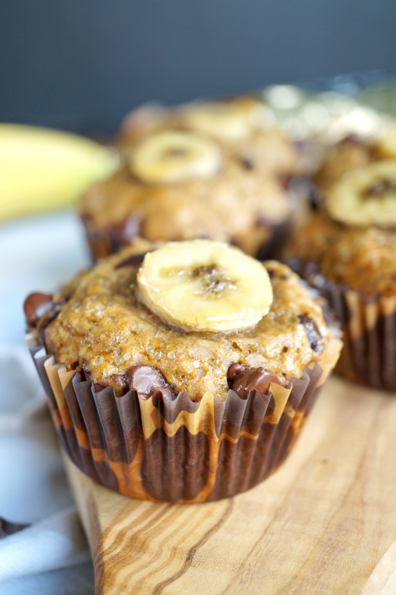 Hellooo, friends and happy Monday! I'm currently in the midst of my summer break {because yes, in PA school, you only get like a week and a half} and it has been glorious. Sorry for neglecting the blog a bit, but I've been trying to relax as much as possible! I've also been studiously ignoring the modules I'm supposed to be doing because who assigns homework over the teeniest, tiniest break?! So rude. But I digress! Today, we are talking about Vegan Chocolate Chip Banana Muffins! I took my reader-favorite vegan banana bread, and reformulated it in muffin form. We all know the worst part of banana bread is how long it takes to bake, and these banana muffins pack the same delicious flavors but they're ready in less than 20 minutes! Oh yes. Let's go.