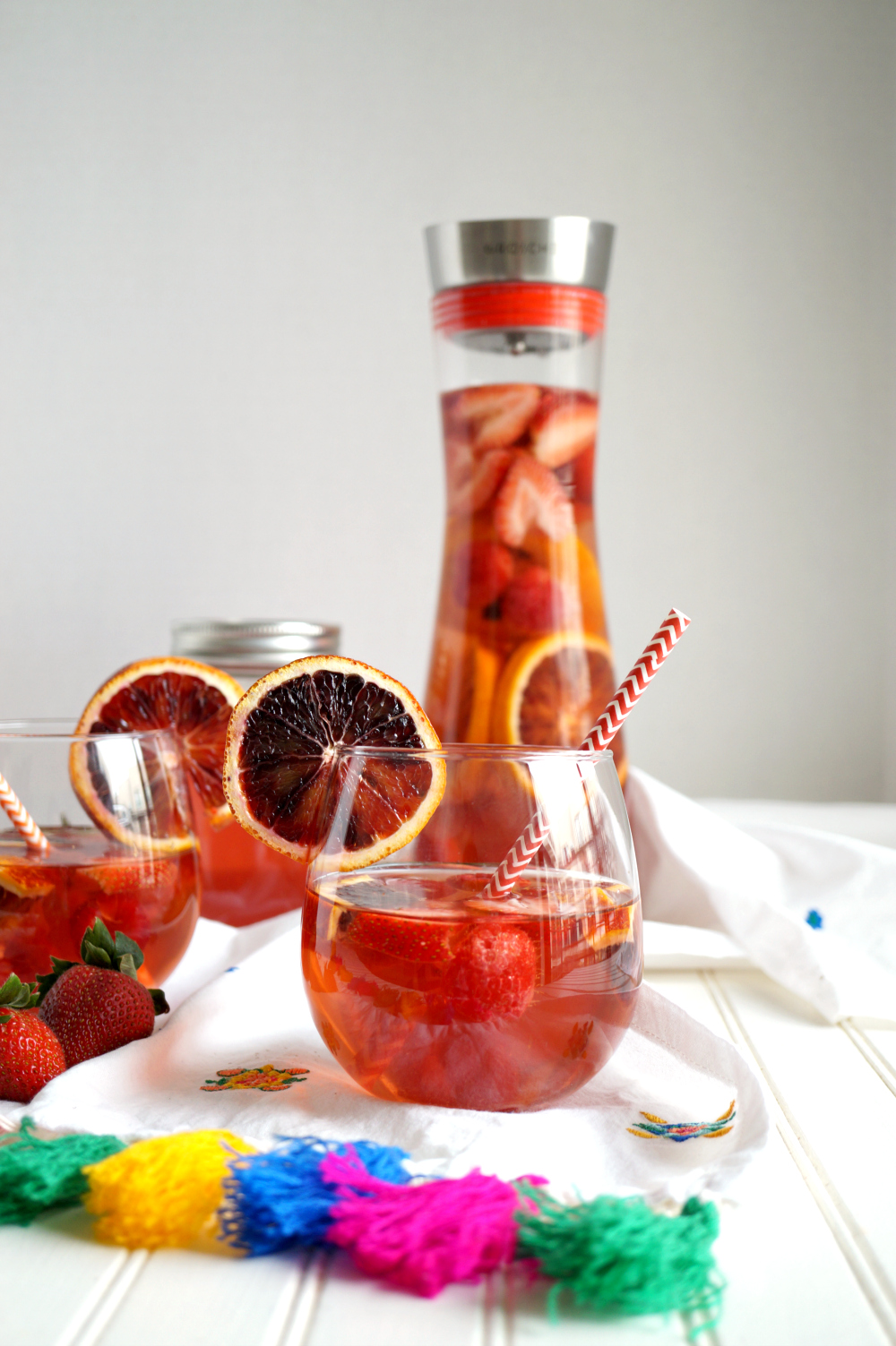 Happy happy Thursday! Welcome to day four of #EasterBrunchWeek, friends. We are taking it easy today with a delicious batch of Blood Orange Berry Sangria, made in this gorgeous Grosche pitcher! All you need is some dry rosè wine, blood oranges, berries, and a secret weapon we will make ourselves... blood orange syrup. It's delicious and so, so simple to make! Let's get to work.