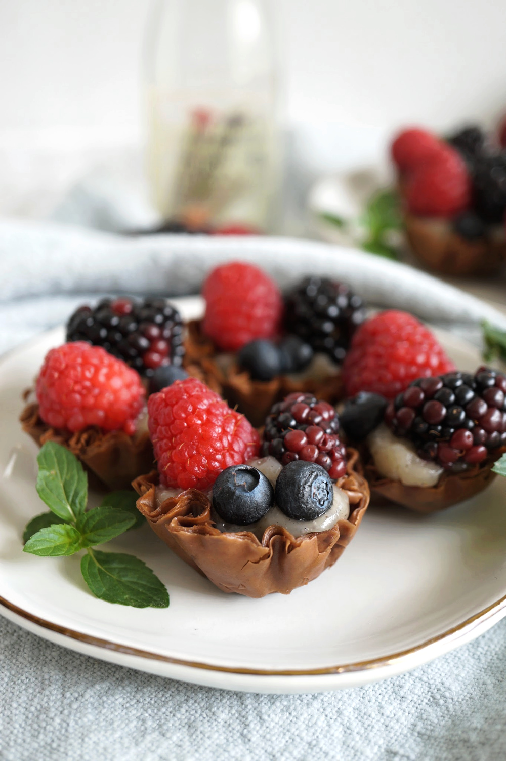 - When pudding is room temperature, divide it among your prepared phyllo cups. Top each tart with a few berries as desired. Serve immediately, or refrigerate until needed. Enjoy!